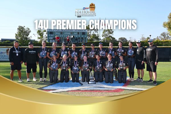Line Drive Softball's Brentt Eads, and PGF Vice President Garrett Hay catch up regarding the new 18U Premier Championship Trophy